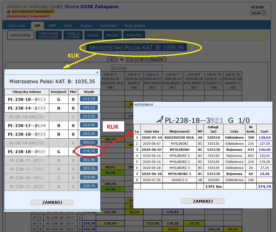 Mistrzostwo Roczniaków, wyniki Regionu, wyniki Derby oraz aktualne Rankingi Oddziałowe i Okręgowe Hodowców (aktualizowane po każdym locie).